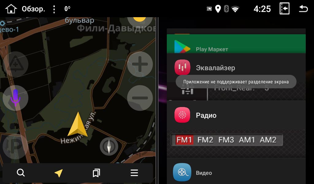 Возможность одновременного запуска двух приложений на экране: например, Вы можете в одной части экрана запустить навигацию, а в другой — радио или список любимых песен.