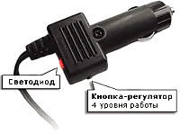 2. Вставьте штекер питания электрогрелки в гнездо прикуривателя. Если на штекере светится светодиод, значит обогреватель работает.