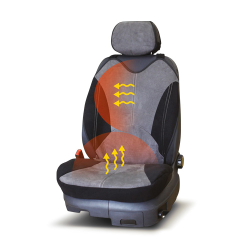 Накидка на сиденье в форме "майки" PSV Сахара хорошо тянется, поэтому вы можете "надеть" ее на любое автомобильное кресло. Электрогрелка Сахара согревает сидушку и спинку сиденья. Модель отличается хорошей циркуляцией горячего и холодного воздуха, благодаря чему вы можете использовать накидку и в теплое время года.