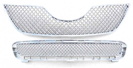 Комплект пластиковых решеток радиатора подходит автомобилям Toyota Camry V40 2006-2010 г.в. Изготовлены в виде сплошной сетки, без эмблемы автомобиля.