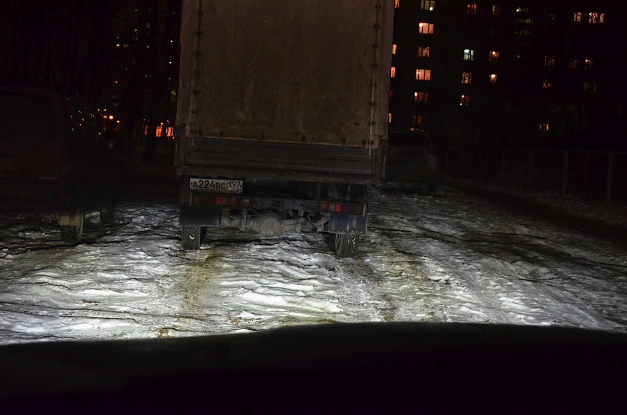 Предлагаем Вам оценить качество свечения лампы в ближнем свете ночью: