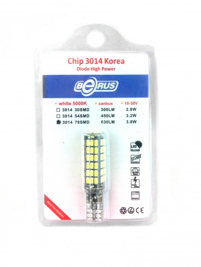 Светодиодная лампа T10 3.8W Canbus предназначена для установки в задние габариты. Она намного ярче обычных галогеновых ламп, отлично освещает дорогу даже ночью и в дождливую, туманную погоду. Цвет свечения со временем не изменяется. Служит такая лампа очень долго, при этом потребляет незначительное количество энергии.