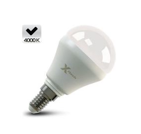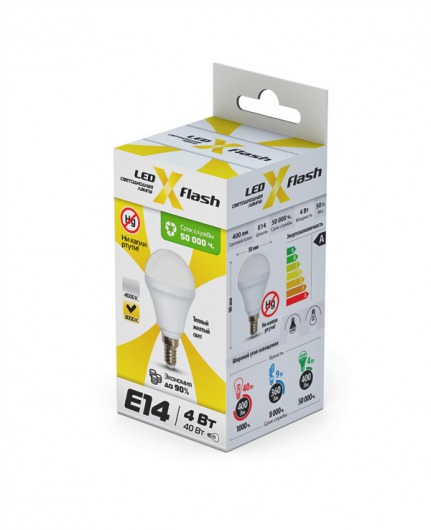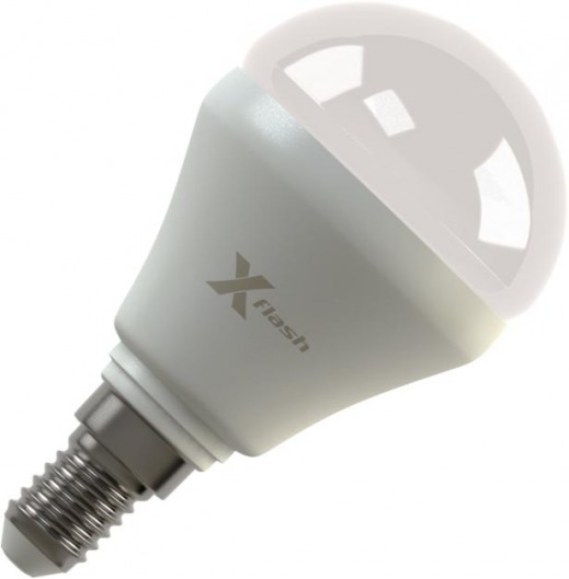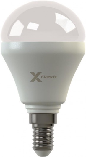 Светодиодная лампа X-Flash MINI E14 4W оптимально подходит для всех типов светильников, которые рассчитаны на лампы накаливания с таким цоколем. Колба модели матовая и имеет шаровидную форму. Алюминиевый радиатор led лампы способствует понижению температуры внутри нее, тем самым увеличивается срок службы. Данная модель рассчитана на напряжение 220 В. Мощность диодной лампы X-Flash — 4 Вт., яркость — 420 Лм, а температура свечения  4000 K (это нейтральный белый свет).