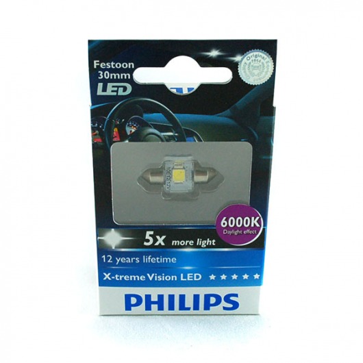 Светодиодная лампа C5W Philips X-Treme Vision 30mm 6000K (белый свет)