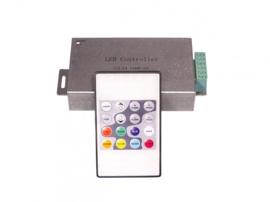 Данный светодиодный контроллер RGB поможет вам создавать разные световые эффекты. Благодаря очень удобному пульту управления с 16 кнопками вы легко сможете управлять сменой цветов и яркостью с определенной скоростью.