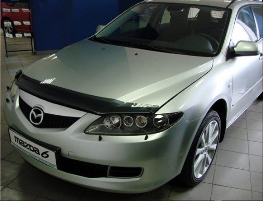 Дефлектор капота для Mazda 6 — это щиток из орг.стекла темного цвета, который крепится на переднюю часть капота. Благодаря тому, что дефлектор разработан специально для Mazda 6 от 2008 г.в., устанавливается он легко и быстро, при этом сверлить кузов вам не нужно. По форме же накладка полностью повторяет контуры капота. Данная модель прочна и долговечна: она надежно крепится, не боится коррозии, экстремальных температур и серьезных перегрузок.