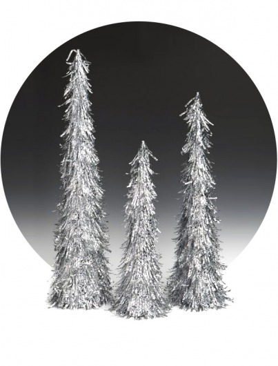 Серебряная елка из фольги имеет форму конуса и довольно устойчива. Ее можно разместить на столе, полке или любой другой поверхности. Такая елочка не ломается и не выцветает. Она будет радовать вас не один год. К тому же, это весьма бюджетный вариант новогоднего украшения. Купить набор елок можно в нашем интернет-магазине по доступной цене.