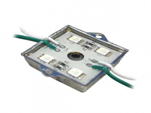 Квадратный светодиодный модуль MS 5050-4 IP65 5760Lm — это 4 диода SMD 5050 и резисторы с рабочим напряжением 12V, которые находятся в металлическом корпусе. Яркость 1 диода составляет 72Lm, а всей упаковки — 5760Lm, что дает вам очень яркое и насыщенное свечение. Корпус залит двухкомпонентным компаундом. Поэтому вы можете использовать светодиодный модуль led в условиях повышенной влажности и резкого перепада внешней температуры от -30 до +50 градусов.