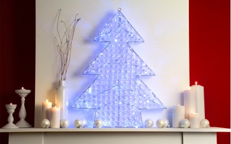 Большая и яркая светодиодная фигура в форме ели заставит обратить на себя внимание абсолютно всех. Светодиодная ёлка несомненно станет оригинальным украшением праздничного интерьера и удивит гостей. Она состоит из 70 светодиодов мощностью 2,52 Вт. Новогодняя световая фигура может использоваться не только при составлении новогодних композиций, но и как альтернатива традиционной новогодней ёлки. Такую ёлку можно прикрепить к стене или подвесить в любом удобном месте в комнате. Поэтому особенно она порадует тех, кто хочет сохранить свободное пространство в квартире.