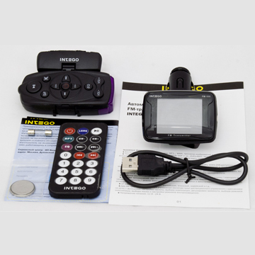 FM-трансмиттер INTEGO FM-106 — это компактное, но очень полезное устройство, которое позволяет слушать любимую музыку и смотреть видео прямо с флэш-карты. В комплект к FM модулятору идут 2 пульта ДУ, один из которых — с креплением на руль вашего автомобиля. С их помощью вы легко можете настраивать частоту, переключать песни, регулировать громкость и другое.