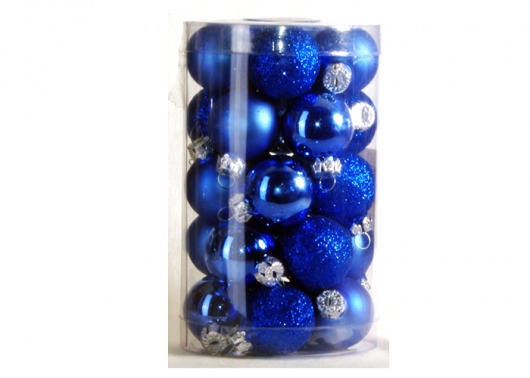 В набор PeneriGifts входят 25 стеклянных шаров диаметром 3 см. Этого более чем достаточно, чтобы целиком нарядить любую домашнюю ель. Даже не обязательно добавлять мишуру — любая елка и без нее будет выглядеть элегантно и самодостаточно. Сочетание матовых, глянцевых и переливающихся синих шариков с блестками смотрится добротно, нарядно и гармонично.
