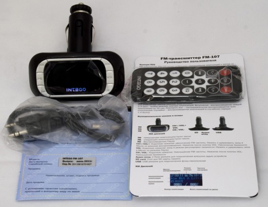 FM-трансмиттер INTEGO FM-107 с аудиовходом и большим контрастным экраномэто компактное, но очень полезное устройство, которое позволяет слушать любимую музыку прямо с флэш-карты или с любого другого устройства (компьютера, планшета, смартфона и др.).