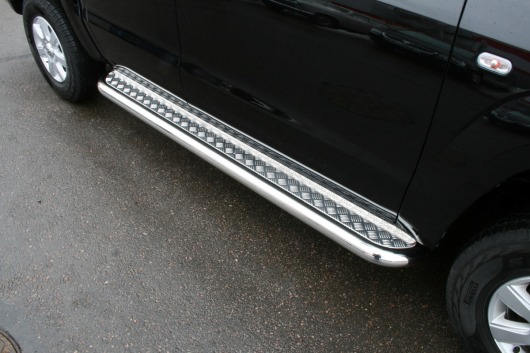 Боковые пороги-подножки сделаны специально для автомобилей Volkswagen Amarok от 2010 г.в., поэтому устанавливаются достаточно просто и без повреждений корпуса. Помимо этого, стальные пороги с листом для Фольксваген Амарок смотрятся очень стильно и эффектно. Они добавят вашему авто еще больше солидности и внушительности.