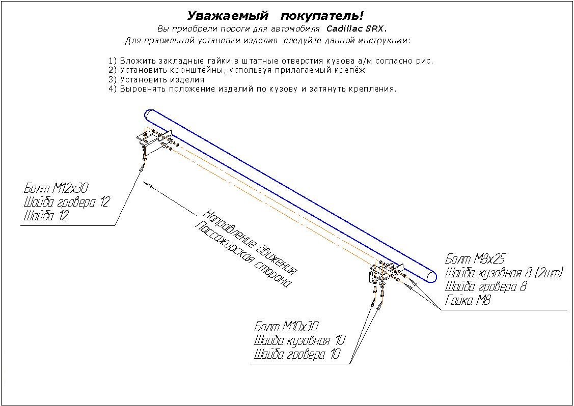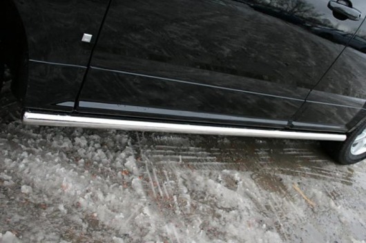 Боковые пороги-подножки сделаны специально для автомобилей Cadillac SRX 2007-2010 г.в., поэтому устанавливаются достаточно просто и без повреждений корпуса. Помимо этого, стальные пороги-трубы для Кадиллак SRX смотрятся очень стильно и эффектно. Они добавят вашему авто еще больше солидности и внушительности.