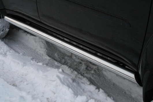 Пороги на Mitsubishi Pajero Sport – это боковые подножки из нержавеющей стали диаметром 76 мм, которые позволяют более комфортно входить и выходить из салона автомобиля. Подножки Mitsubishi Pajero Sport очень прочные, надежные и долговечные: они не боятся коррозии, сколов и царапин и выдерживают большие нагрузки.