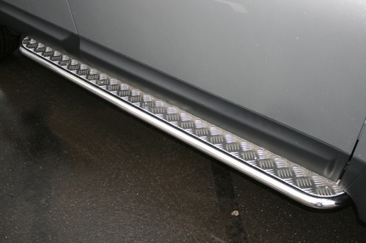 Боковые пороги-подножки сделаны специально для автомобилей Nissan Qashqai+2 от 2009 г.в., поэтому устанавливаются достаточно просто и без повреждений корпуса. Помимо этого, стальные пороги с листом для Ниссан Кашкай+2 смотрятся очень стильно и эффектно. Они добавят вашему авто еще больше солидности и внушительности.