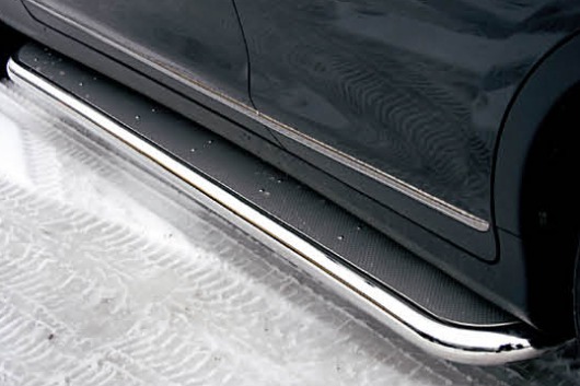 Пороги на Infiniti EX 35 – это боковые подножки из нержавеющей стали диаметром 60 мм, которые позволяют более комфортно входить и выходить из салона автомобиля. Подножки Infiniti EX 35 очень прочные, надежные и долговечные: они не боятся коррозии, сколов и царапин и выдерживают большие нагрузки.