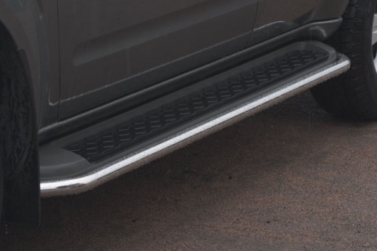 Защита порогов из нержавейки убережет углы подножек авто (самую уязвимую их часть) не только от воздействия воды и грязи, но и от механических повреждений. Штатным порогам вашего автомобиля будут не страшны вмятины, сколы и царапины от обуви, гравия, ударов при неудачных парковках или мелких ДТП. А еще защита штатных порогов не боится коррозии. Так или иначе, с таким надежным каркасом пороги вашего автомобиля прослужат вам в разы дольше.