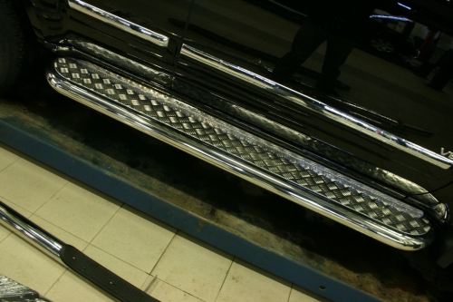 Пороги на Nissan Pathfinder – это боковые подножки из нержавеющей стали диаметром 76 мм, которые позволяют более комфортно входить и выходить из салона автомобиля. Подножки Nissan Pathfinder очень прочные, надежные и долговечные: они не боятся коррозии, сколов и царапин и выдерживают большие нагрузки.