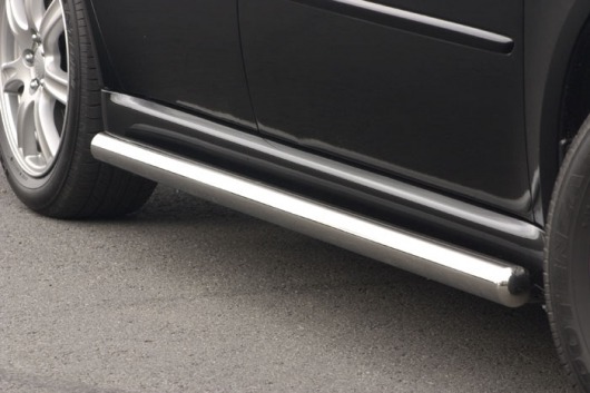 Пороги на Subaru Legacy Outback – это боковые подножки из нержавеющей стали диаметром 60 мм, которые позволяют более комфортно входить и выходить из салона автомобиля. Подножки Subaru Legacy Outback очень прочные, надежные и долговечные: они не боятся коррозии, сколов и царапин и выдерживают большие нагрузки.