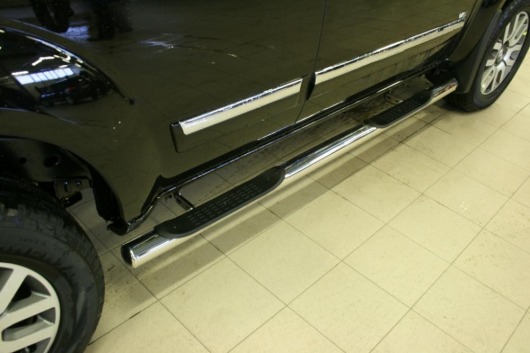 Пороги на Nissan Pathfinder – это боковые подножки из нержавеющей стали диаметром 76 мм, которые позволяют более комфортно входить и выходить из салона автомобиля. Подножки Nissan Pathfinder очень прочные, надежные и долговечные: они не боятся коррозии, сколов и царапин и выдерживают большие нагрузки.