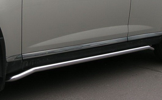 Защита для порогов Infiniti FX35 и FX45 – это накладки на пороги из нержавеющей стали в форме трубы диаметром 42 мм. Главное их назначение – защита подножек авто от износа.