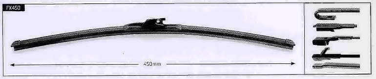 Trico Flex FX450 — это бескаркасная щетка стеклоочистителя, которой вы можете пользоваться как летом, так и зимой. Длина дворника Trico FX450 составляет 45 см. Стеклоочиститель Trico FX450 оснащен мультиадаптером и поэтому легко устанавливается на автомобиль любой марки со следующим креплением: