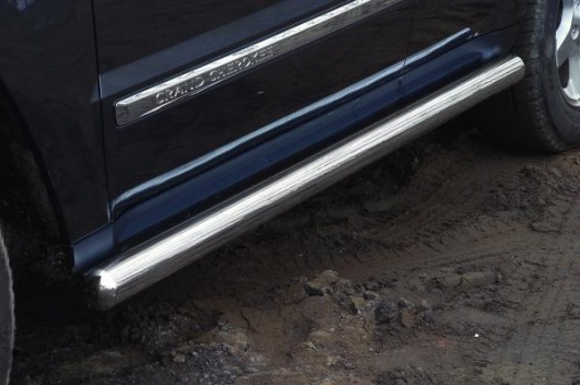 Пороги на Jeep Grand Cherokee – это боковые подножки из нержавеющей стали диаметром 76 мм, которые позволяют более комфортно входить и выходить из салона автомобиля. Подножки Jeep Grand Cherokee очень прочные, надежные и долговечные: они не боятся коррозии, сколов и царапин и выдерживают большие нагрузки.