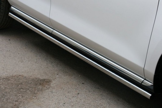 Пороги на Mazda CX-7 – это боковые подножки из нержавеющей стали диаметром 42 мм, которые позволяют более комфортно входить и выходить из салона автомобиля. Подножки Mazda CX-7 очень прочные, надежные и долговечные: они не боятся коррозии, сколов и царапин и выдерживают большие нагрузки.