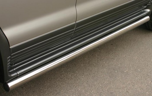 Пороги на Kia Sportage – это боковые подножки из нержавеющей стали диаметром 60 мм, которые позволяют более комфортно входить и выходить из салона автомобиля. Подножки Kia Sportage очень прочные, надежные и долговечные: они не боятся коррозии, сколов и царапин и выдерживают большие нагрузки.
