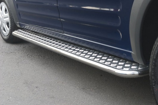 Пороги на Ford Connect – это боковые подножки из нержавеющей стали диаметром 42 мм, которые позволяют более комфортно входить и выходить из салона автомобиля. Подножки Ford Connect очень прочные, надежные и долговечные: они не боятся коррозии, сколов и царапин и выдерживают большие нагрузки.