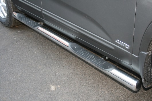 Боковые пороги-подножки сделаны специально для автомобилей Kia Sorento 2009-2012 г.в., поэтому устанавливаются достаточно просто и без повреждений корпуса. Помимо этого, стальные пороги-трубы с проступями для Киа Соренто смотрятся очень стильно и эффектно. Они добавят вашему авто еще больше солидности и внушительности.