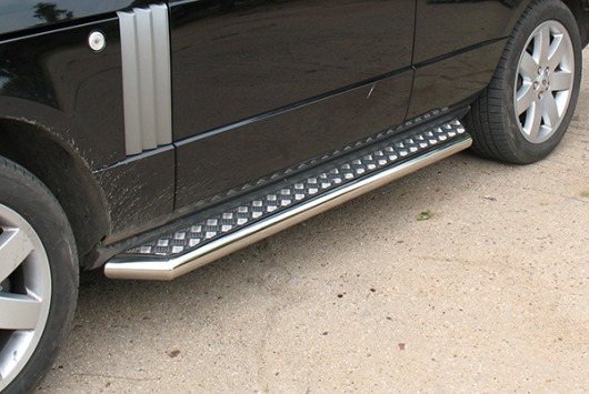 Боковые пороги-подножки сделаны специально для автомобилей Land Rover Discovery III, поэтому устанавливаются достаточно просто и без повреждений корпуса. Помимо этого, стальные пороги с листом для Ленд Ровер Дискавери III смотрятся очень стильно и эффектно. Они добавят вашему авто еще больше солидности и внушительности.
