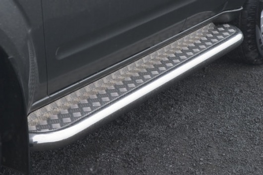 Боковые пороги-подножки сделаны специально для автомобилей Nissan Patrol GR Y61, поэтому устанавливаются достаточно просто и без повреждений корпуса. Помимо этого, стальные пороги с листом для Ниссан Патрол GR Y61 смотрятся очень стильно и эффектно. Они добавят вашему авто еще больше солидности и внушительности.