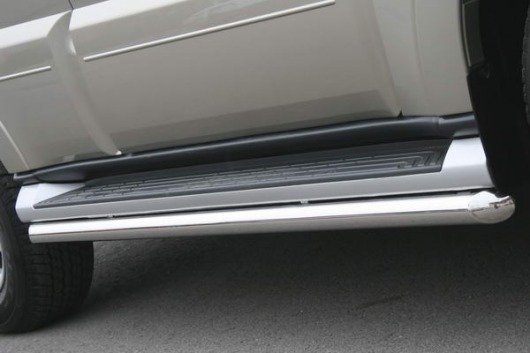 Защита для порогов Mitsubishi Pajero IV – это накладки на пороги из нержавеющей стали в форме трубы диаметром 60 мм. Главное их назначение – защита подножек авто от износа.