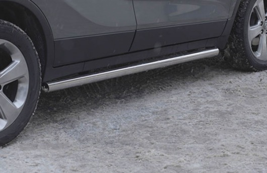 Боковые пороги-подножки сделаны специально для автомобилей Opel Mokka от 2012 г.в., поэтому устанавливаются достаточно просто и без повреждений корпуса. Помимо этого, стальные пороги-трубы для Опель Мокка смотрятся очень стильно и эффектно. Они добавят вашему авто еще больше солидности и внушительности.