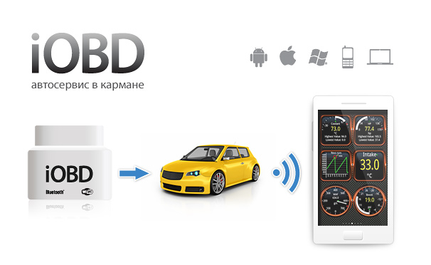 Проводите компьютерную диагностику своего автомобиля собственными руками с помощью «карманного автосервиса» iOBD! Сэкономьте свои деньги, не посещая центры автодиагностики!