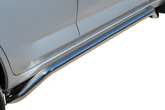 Пороги на Toyota RAV4 SWB – это боковые подножки из нержавеющей стали диаметром 60 мм, которые позволяют более комфортно входить и выходить из салона автомобиля. Подножки Toyota RAV4 SWB очень прочные, надежные и долговечные: они не боятся коррозии, сколов и царапин и выдерживают большие нагрузки.