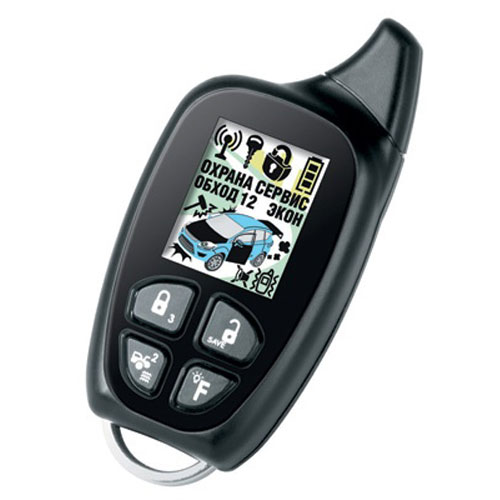 Брелок-передатчик оснащен многоцветным ЖК-дисплеем с четырьмя  кнопками. Все пиктограммы на экране отображаются на русском языке, что делает управление сигнализацией понятным и удобным. В брелок встроен динамик, но при необходимости Вы можете перейти в режим вибро. Стильный и прочный корпус брелока имеет эргономичную форму.