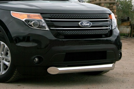 Защита переднего бампера труба предназначена для автомобилей Ford Explorer от 2011 г.в. Вам не придется подгонять защиту под размеры бампера вашего авто. И с монтажом проблем не возникнет: установка защиты переднего бампера производится в штатные отверстия, а значит, необходимость сверлить кузов отпадает.