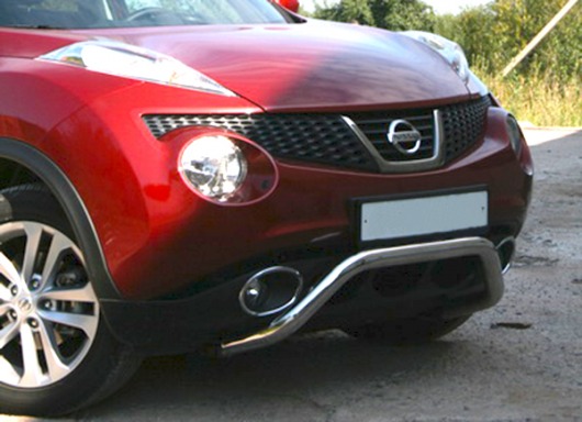 Передняя решетка Nissan Juke (кенгурятник) – это защитная дуга на бампер из нержавеющей стали диаметром 60 мм.