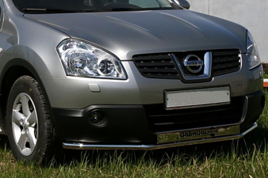 Защита переднего бампера для Nissan Qashqai+2 – это труба на бампер из нержавеющей стали диаметром 42 мм.