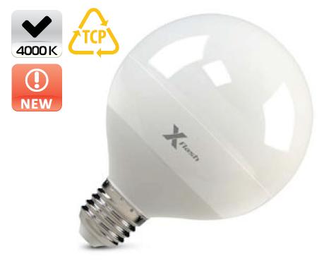 Светодиодная лампа X-Flash Globe E27 13W — лампа общего освещения. Колба лампы шарообразной формы типа "Globe", матовая. Led лампа имеет уникальный радиатор из теплорассеивающей пластмассы, который способствует эффективному распределению тепла и снижению температуры внутри лампы, тем самым увеличивается срок службы лампы. Данная модель рассчитана на напряжение 220 В. Мощность диодной лампы X-Flash — 13 Вт., яркость — 1050 Лм, а температура свечения  4000 K (это нейтральный белый свет).