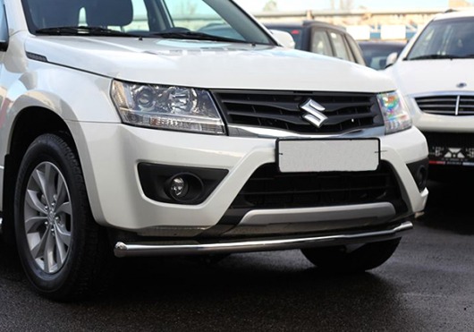 Защита переднего бампера труба Premium предназначена для автомобилей Suzuki Grand Vitara 5D от 2012 г.в. Вам не придется подгонять защиту под размеры бампера вашего авто. И с монтажом проблем не возникнет: установка защиты переднего бампера производится в штатные отверстия, а значит, необходимость сверлить кузов отпадает.