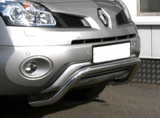 Передняя решетка Renault Koleos (кенгурятник) – это защитная дуга на бампер из нержавеющей стали диаметром 60 мм.