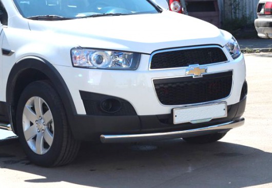 Защита переднего бампера труба предназначена для автомобилей Chevrolet Captiva от 2012 г.в. Вам не придется подгонять защиту под размеры бампера вашего авто. И с монтажом проблем не возникнет: установка защиты переднего бампера производится в штатные отверстия, а значит, необходимость сверлить кузов отпадает.