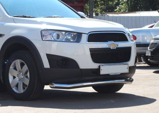 Труба на бампер Chevrolet Captiva защищает передний бампер автомобиля от различных механических повреждений при мелких ДТП и неудачных парковках, а также незаменима при езде по бездорожью. А кроме этого, труба на передний бампер Шевроле Каптива смотрится очень стильно и эффектно.