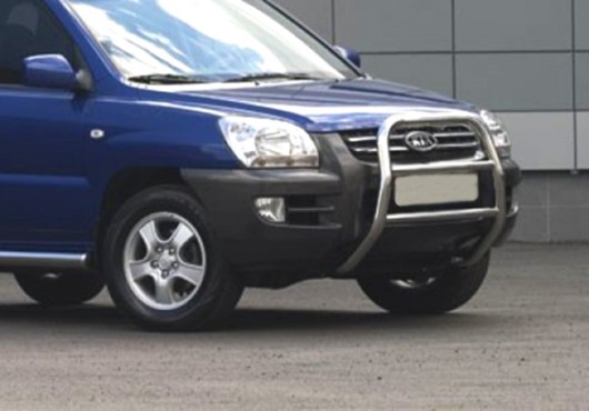Защитная решетка переднего бампера предназначена для автомобилей Kia Sportage от 2005 г.в. Вам не придется подгонять передний кенгурятник под размеры кузова вашего авто. И с монтажом проблем не возникнет: установка кенгурятника Kia Sportage производится в штатные отверстия, а значит, необходимость сверлить кузов отпадает.