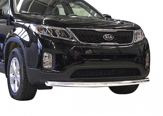 Защита переднего бампера труба предназначена для автомобилей Kia Sorento от 2013 г.в. Вам не придется подгонять защиту под размеры бампера вашего авто. И с монтажом проблем не возникнет: установка защиты переднего бампера производится в штатные отверстия, а значит, необходимость сверлить кузов отпадает.