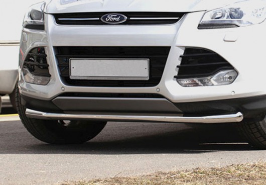 Защита переднего бампера труба Premium (низкая) предназначена для автомобилей Ford Kuga  от 2013 г.в. Вам не придется подгонять защиту под размеры бампера вашего авто. И с монтажом проблем не возникнет: установка защиты переднего бампера производится в штатные отверстия, а значит, необходимость сверлить кузов отпадает.